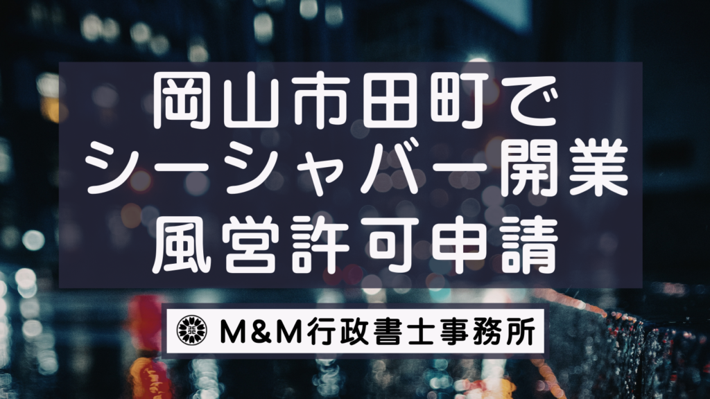 こちらのページでは岡山県田町でシーシャバーの開業をしたい(たばこ出張販売許可・飲食店営業許可・深夜酒類提供飲食店の申請・届出をしたい)をお考えの方向けにシーシャバー開業に必要な許可申請(および届出)の書類・料金・流れ・ご依頼方法について... -