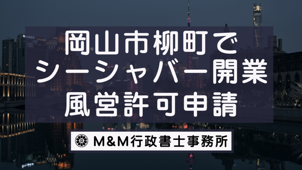 こちらのページでは岡山県柳町でシーシャバーの開業をしたい(たばこ出張販売許可・飲食店営業許可・深夜酒類提供飲食店の申請・届出をしたい)をお考えの方向けにシーシャバー開業に必要な許可申請(および届出)の書類・料金・流れ・ご依頼方法について... -