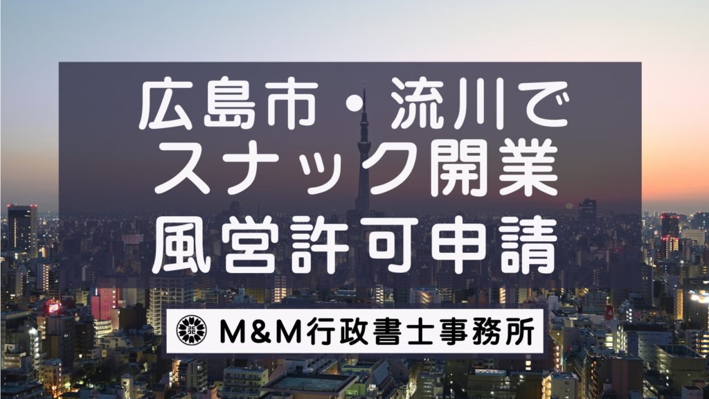 こちらのページでは広島市・流川でスナックの開業をしたい(風俗営業許可・風営法許可申請をしたい)をお考えの方向けに風営法許可申請に必要な書類・料金・流れ・ご依頼方法について解説しています。 ご依頼はこちらから -