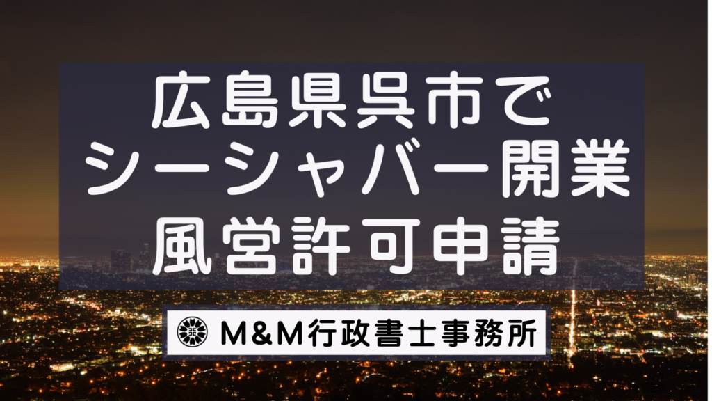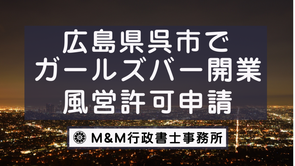 こちらのページでは広島県呉市でガールズバーの開業をしたい(風俗営業許可・風営法許可申請をしたい)をお考えの方向けに風営法許可申請に必要な書類・料金・流れ・ご依頼方法について解説しています。 ご依頼はこちらから -